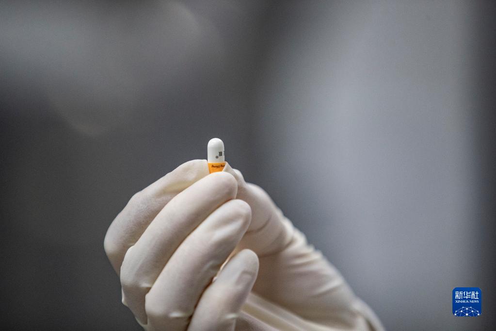 12月16日,在重庆市永川区新领先(重庆)生物医药一体化研发服务基地,新领先重庆研究院的研发人员查看全自动硬胶囊充填机制作的样品胶囊药。
