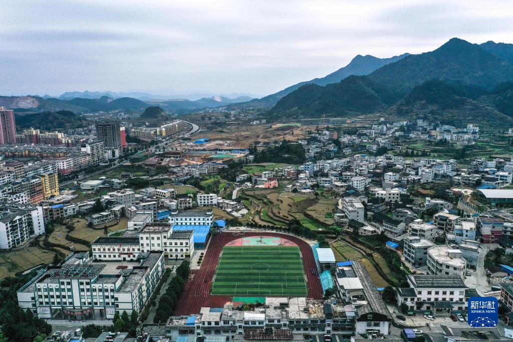 这是11月15日拍摄的贵州省丹寨县城关第一小学校园足球场(无人机照片)。