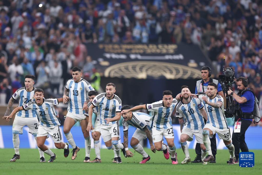 当日,在卡塔尔卢赛尔球场进行的2022卡塔尔世界杯足球赛决赛中,阿根廷队与法国队在常规时间和加时赛战成3比3平,通过点球大战阿根廷队以总比分7比5获胜,夺得冠军。