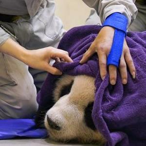 2022年11月19日,台北动物园工作人员在照顾病中的大陆赠台大熊猫“团团”。