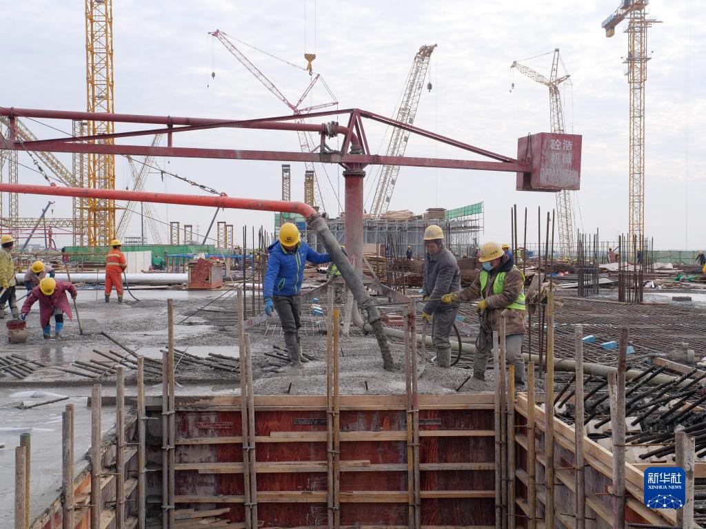 12月20日,工作人员在南昌东站施工现场忙碌。新华社记者 胡晨欢 摄
