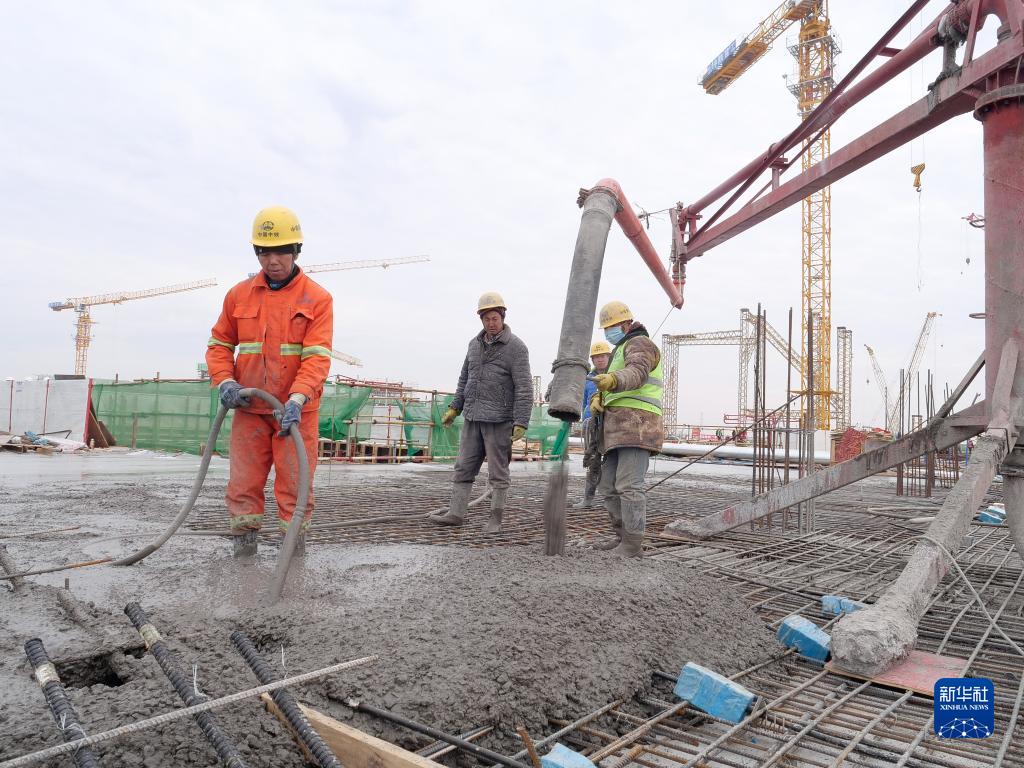 12月20日,工作人员在南昌东站施工现场忙碌。新华社记者 胡晨欢 摄