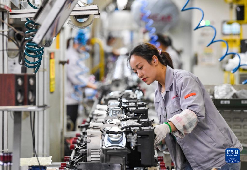 10月19日,在位于重庆市璧山区的一家动力设备制造企业,工人在生产车间作业。