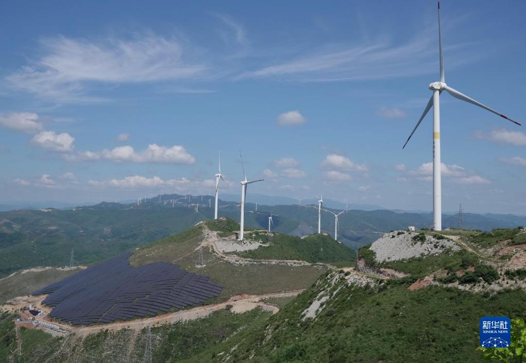 8月17日,在河北省秦皇岛市青龙满族自治县草碾乡华山村附近的荒山上,工人在150兆瓦光伏发电站建设工地施工。