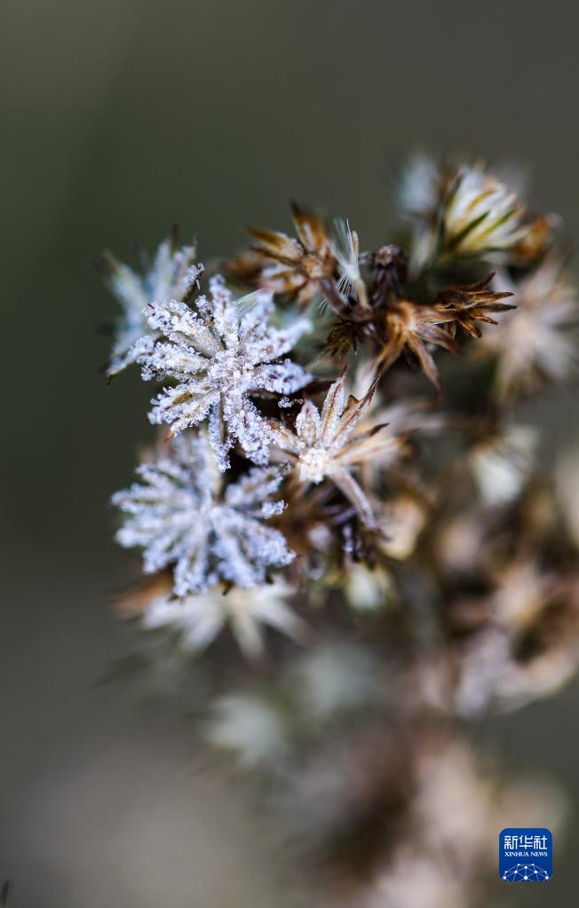 12月18日,在贵州省岑巩县天马镇天马村,植物结出霜花。