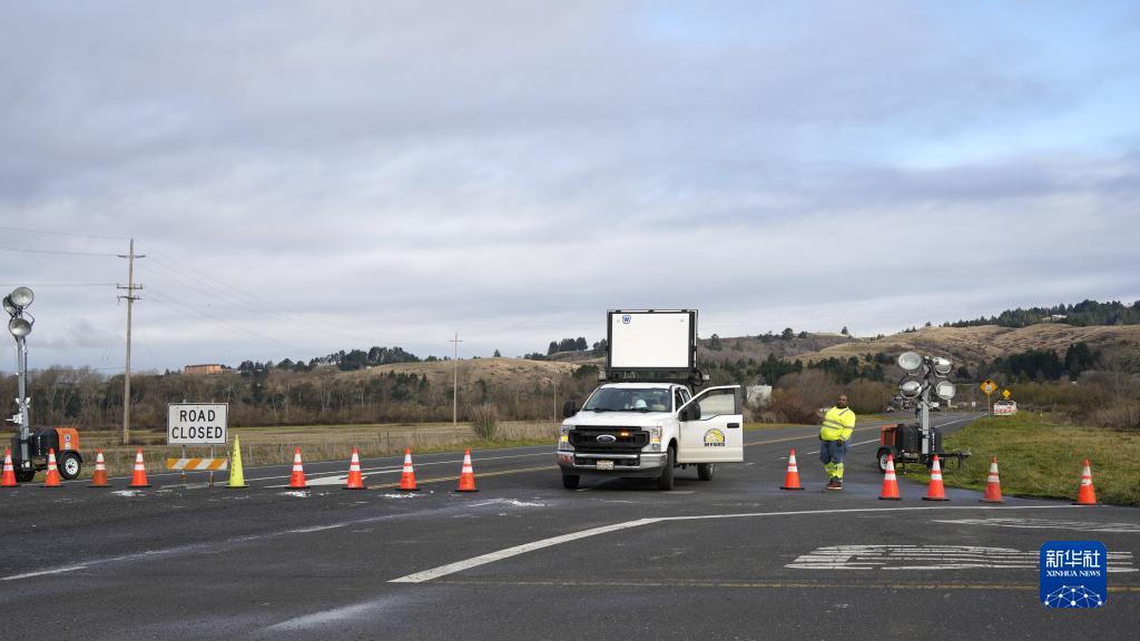12月21日,在美国加利福尼亚州北部,通往芬代尔桥的公路因桥梁被地震损坏而关闭。