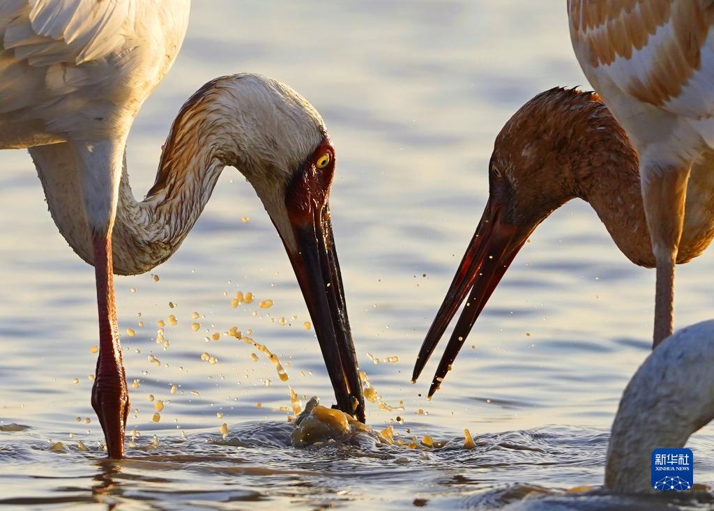 在鄱阳湖畔的五星白鹤保护小区,成百上千只候鸟欢快地嬉戏觅食,享受着鄱阳湖畔的冬日暖阳。鄱阳湖今年遭遇持续干旱,为保护越冬候鸟,爱鸟人士将候鸟常来的藕塘租下来,扩建五星白鹤保护小区,周边的稻田也只种不收,留给候鸟作食物……这一系列举措保障了候鸟在此栖息越冬。