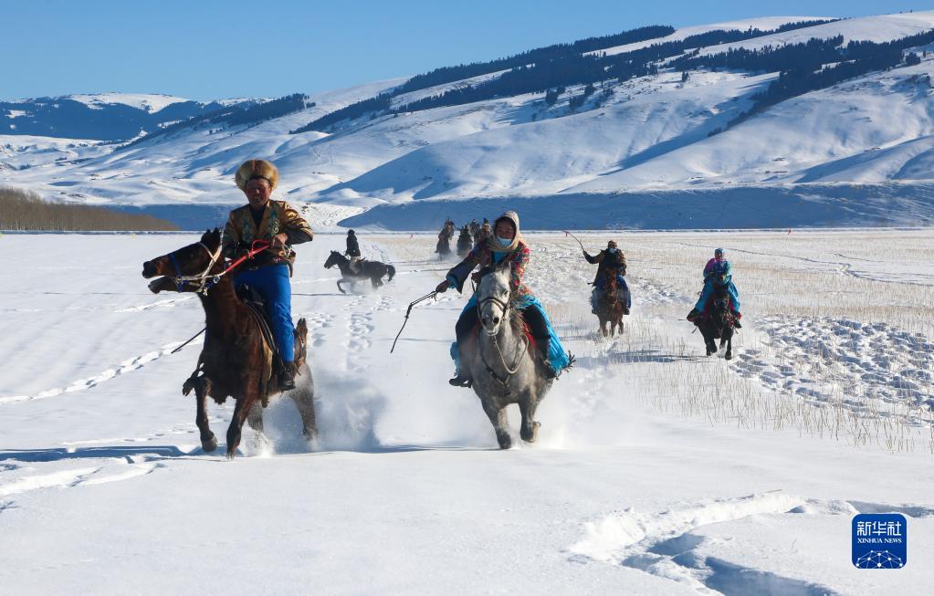 12月21日,新疆伊犁哈萨克自治州昭苏县萨尔阔布乡农牧民举行“姑娘追”活动,这是哈萨克族的传统马上体育运动。入冬以来,昭苏县各族农牧民开展丰富多彩的民间文化体育活动,丰富冬闲时节生活。