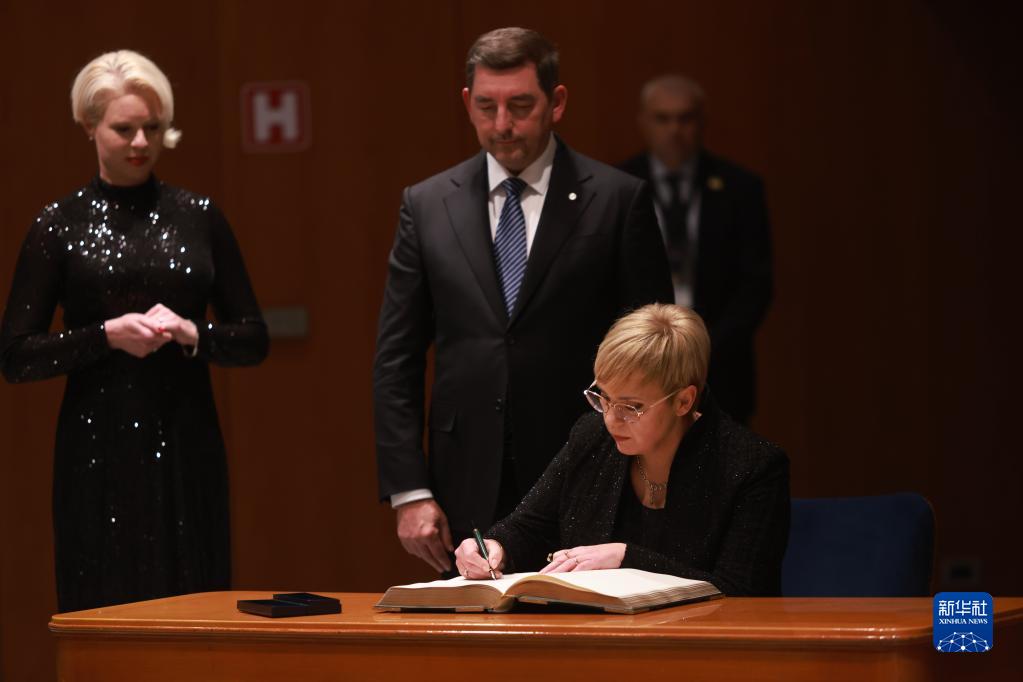 12月22日,在斯洛文尼亚首都卢布尔雅那,娜塔莎·皮尔茨·穆萨尔在总统就职仪式上签字。