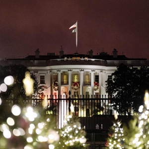 这是12月22日在美国华盛顿拍摄的圣诞树装饰掩映下的白宫。