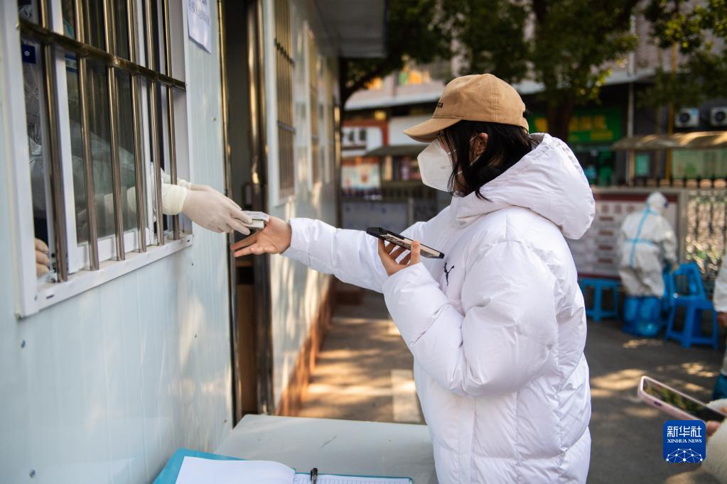 12月23日,在长沙市湘江新区望岳街道社区卫生服务中心,市民在领取防疫健康包。