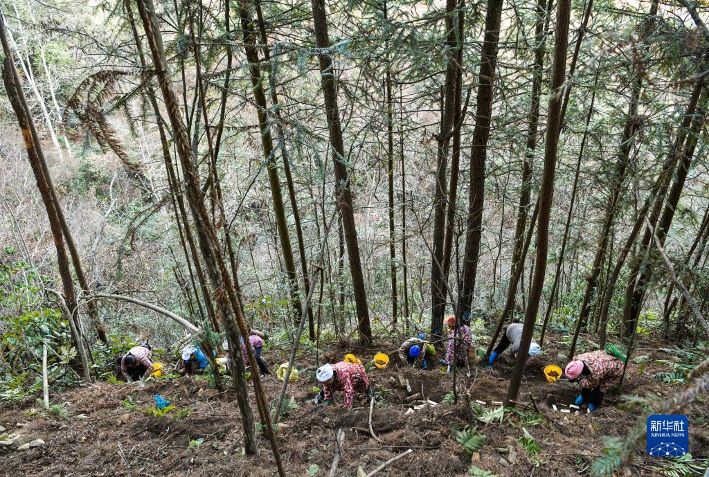 12月21日,农民在贵州省黎平县九潮镇万宝山天麻种植基地劳作。