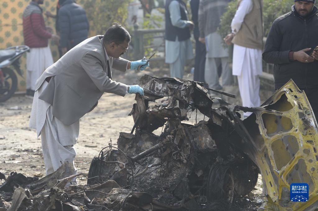 12月23日,安全人员在巴基斯坦伊斯兰堡的自杀式爆炸袭击事件现场调查。