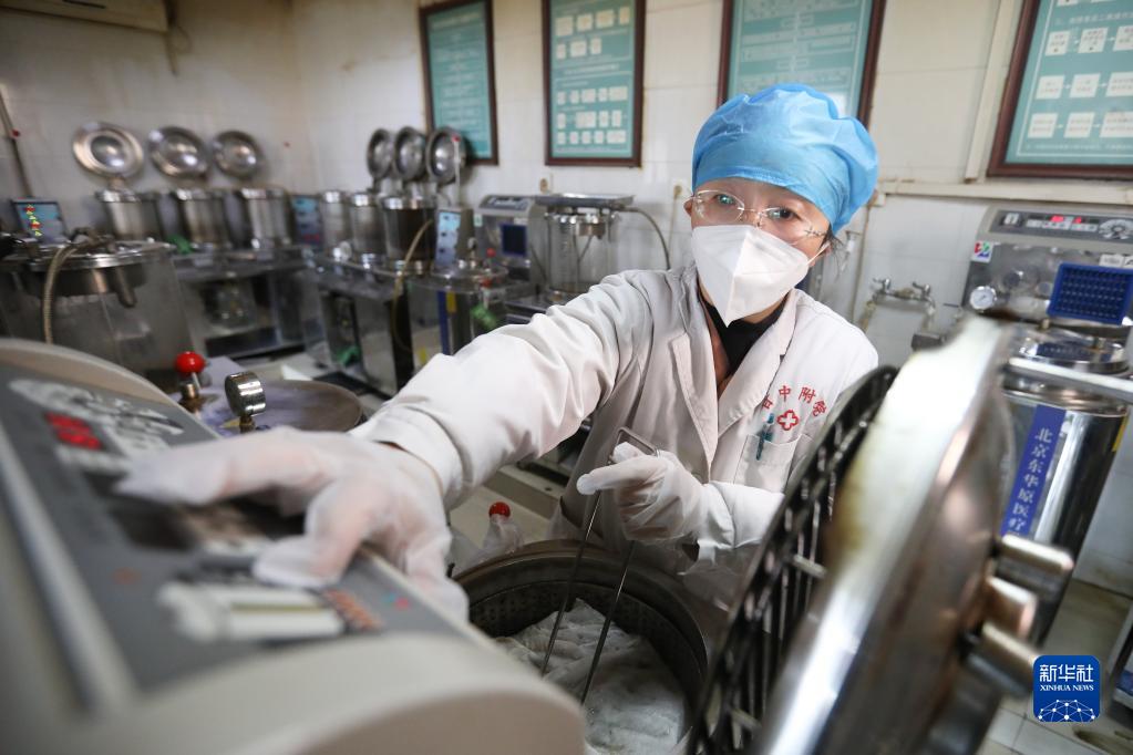 12月23日,甘肃中医药大学附属医院医务人员在煎药室熬制中药。