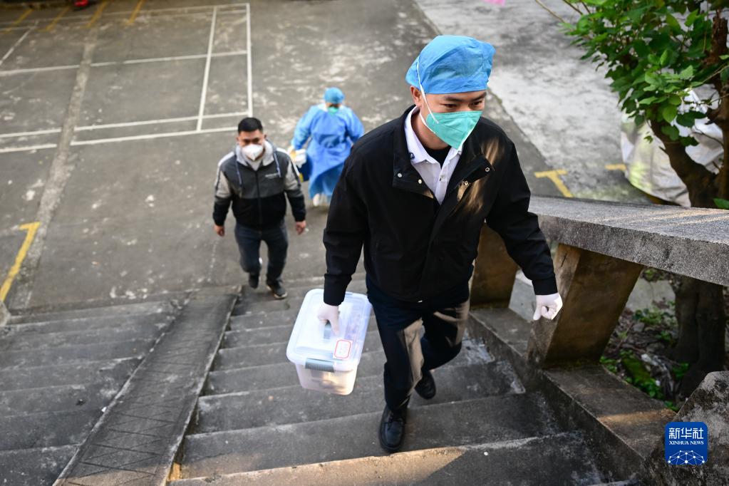 12月23日,医护人员走进文昌市文城镇文岭社区,准备上门为社区老年人接种新冠疫苗。