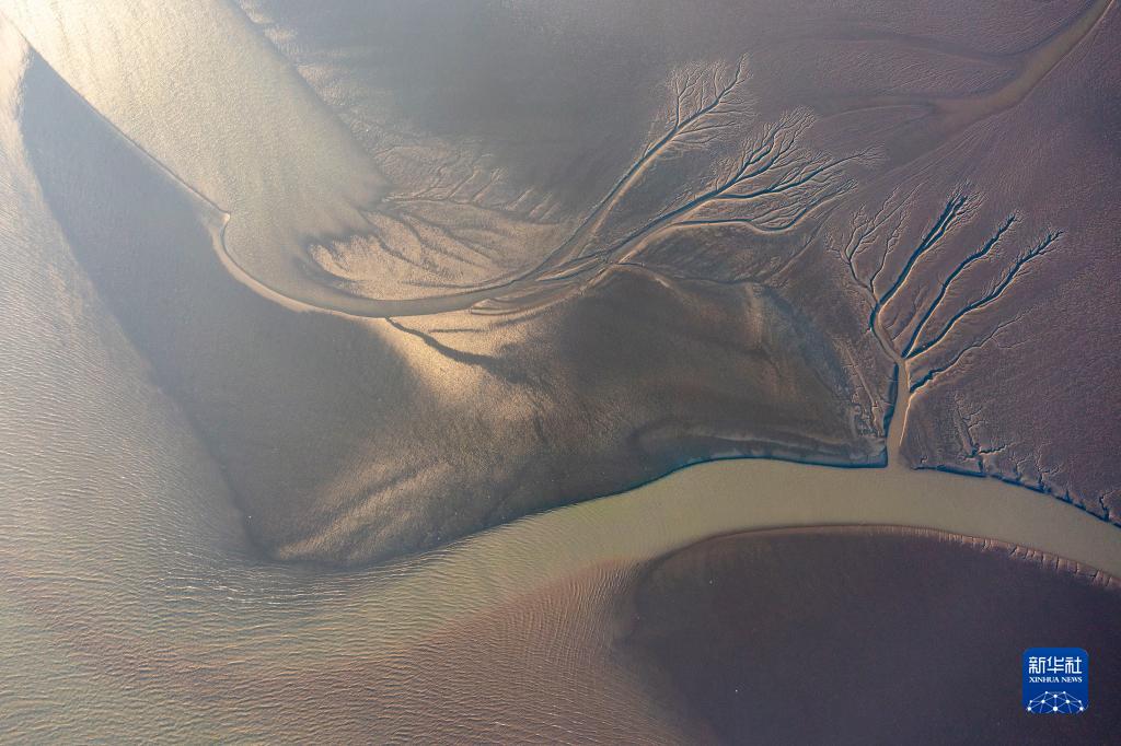 12月24日拍摄的长江张家港湾段“潮汐树” 景观(无人机照片)。