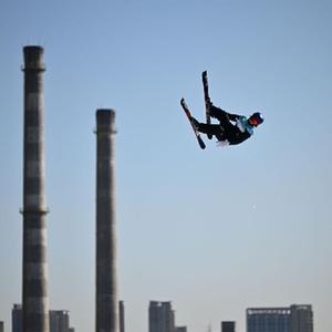 这是2022年2月8日,中国选手谷爱凌在北京2022年冬奥会自由式滑雪女子大跳台决赛中。
