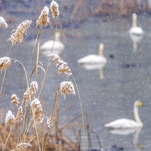 日前,河南三门峡天鹅湖国家城市湿地公园迎来小雪。白天鹅在雪中游弋,与冬景相映成趣。