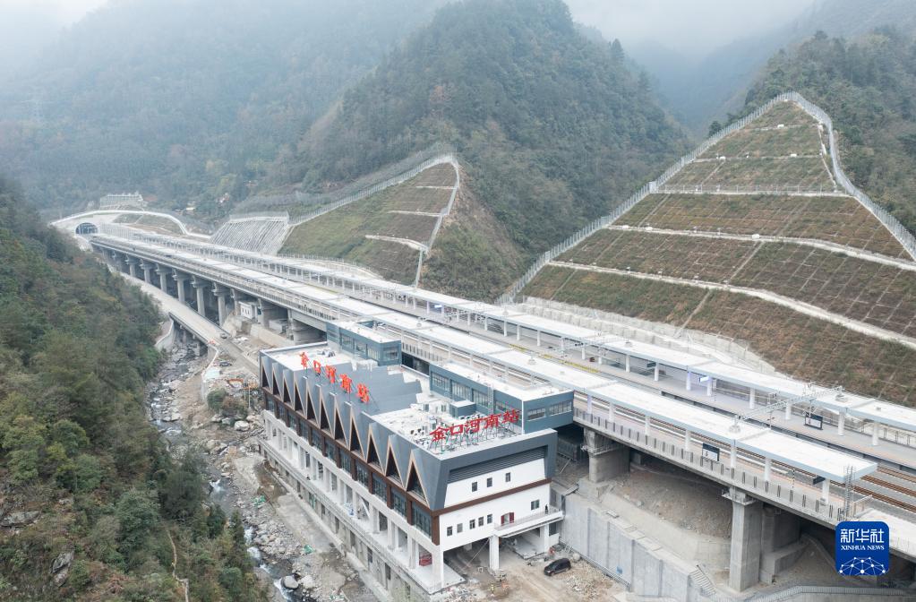 12月16日拍摄的新成昆铁路金口河南站段(无人机照片)。