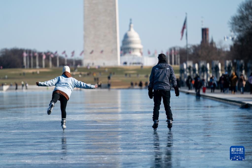 受冬季风暴影响,美国首都华盛顿迎来20多年来最冷圣诞节,国家广场上的林肯纪念堂倒影池完全结冰,该市此前宣布出现寒冷天气紧急状况。