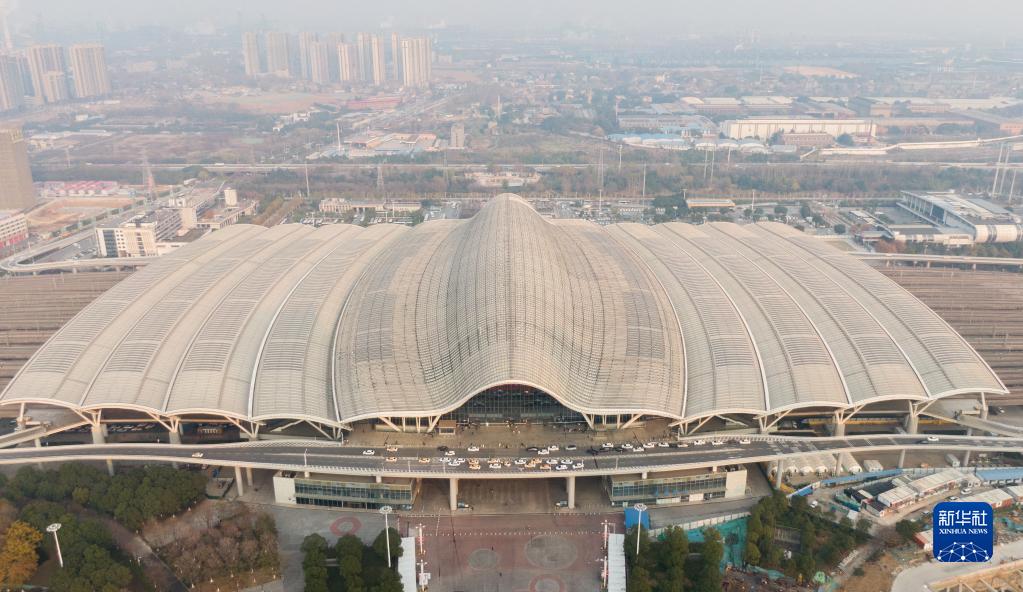 12月26日拍摄的武汉站(无人机照片)。