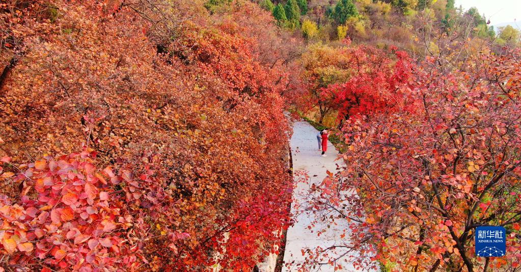 游客在山东省临沂市沂南县龙宿山上赏秋(2022年10月24日摄)。