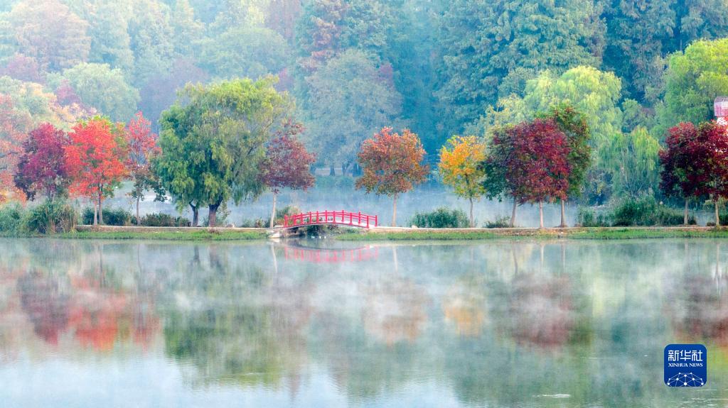这是在江苏省南京市中山植物园拍摄的秋日晨景(2022年11月2日摄,无人机照片)。
