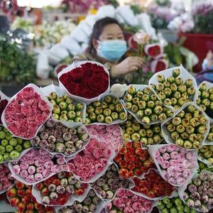 12月27日,昆明斗南花市商家在整理待售的鲜花。