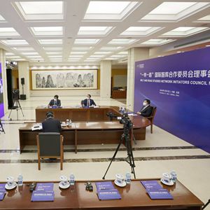 12月27日,“一带一路”国际智库合作委员会2022年理事会会议以线上线下相结合方式举行。新华社记者 邢广利 摄