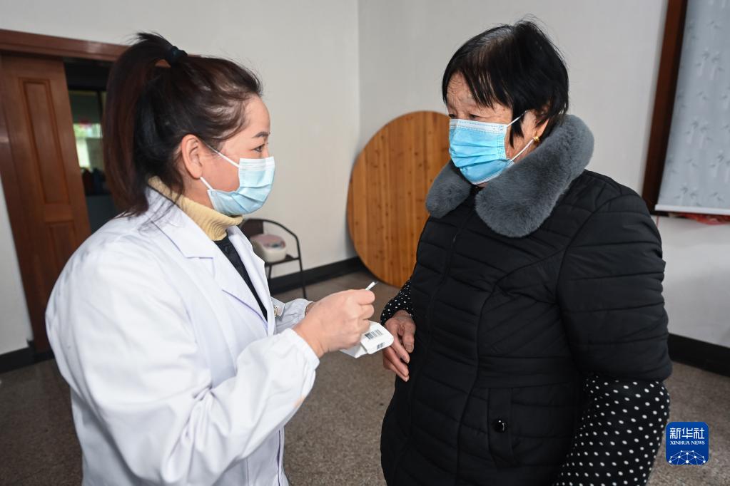 12月28日,织里镇轧村村卫生室的医务人员到织里镇港西村上门给老人讲解如何正确服用药物。