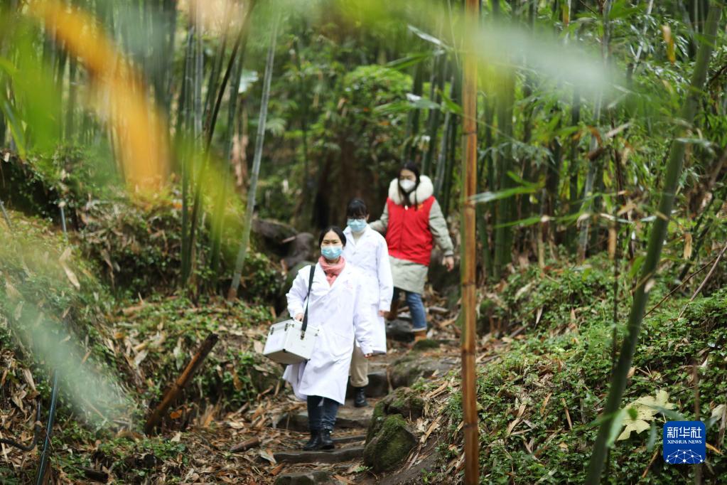 12月28日,在赤水市石堡乡兴农村,医护人员和党员志愿者行走在为村民送药路上。