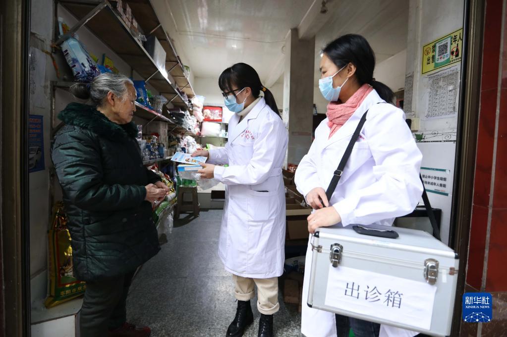 12月28日,在赤水市石堡乡朝阳社区,医护人员上门为群众发放药品。