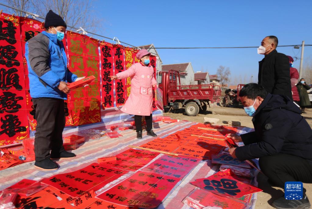 12月28日,在山东省临沂市沂南县岸堤镇,人们在大集上选购年货。
