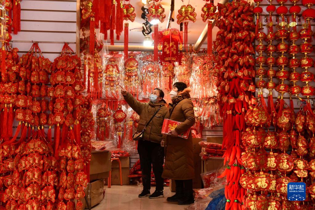 12月29日,人们在河北省石家庄市一家年货市场选购年货。