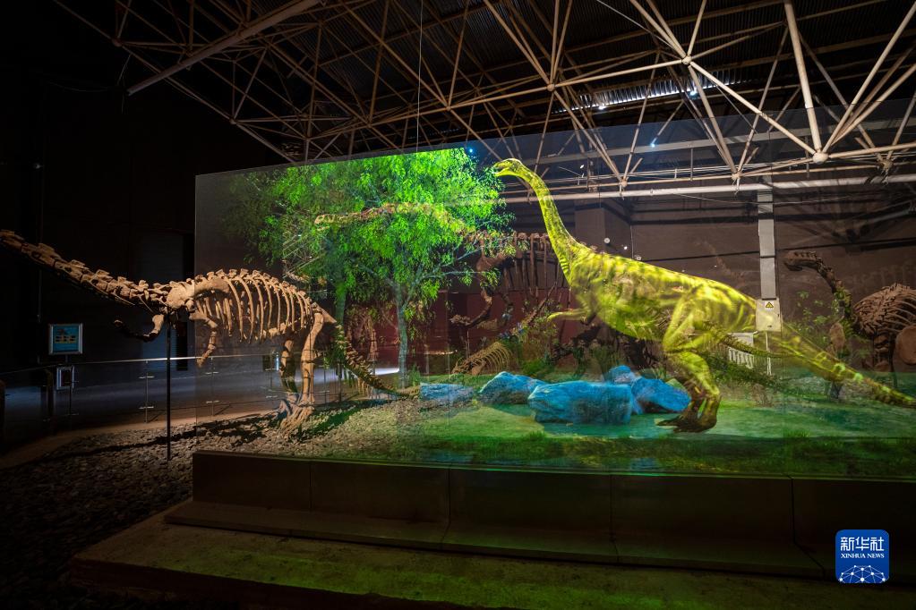这是12月28日在中国禄丰恐龙大遗址馆拍摄的通过数字技术还原的恐龙形象。