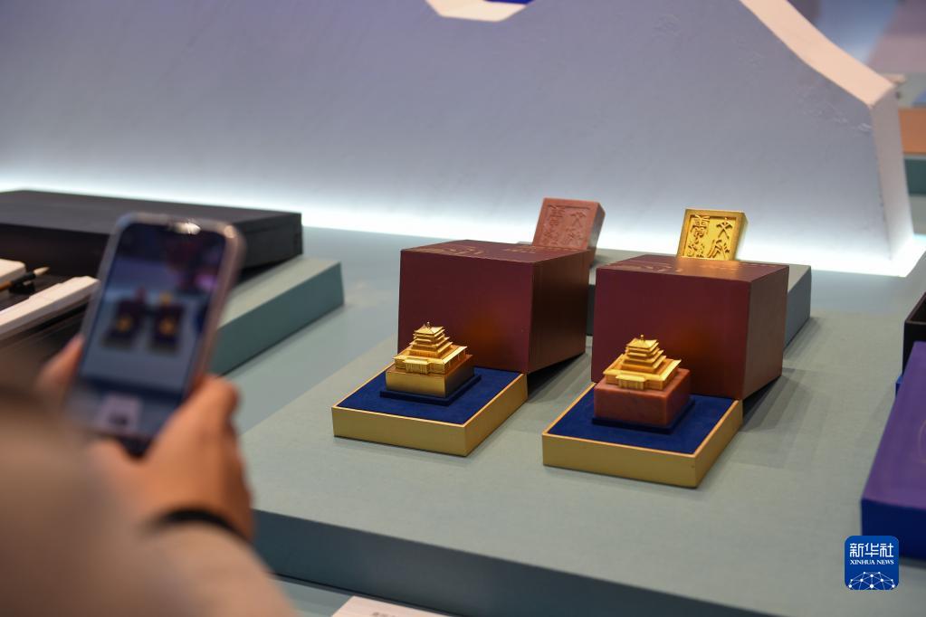 12月29日,参观者在中国国家版本馆展区拍摄文创产品。