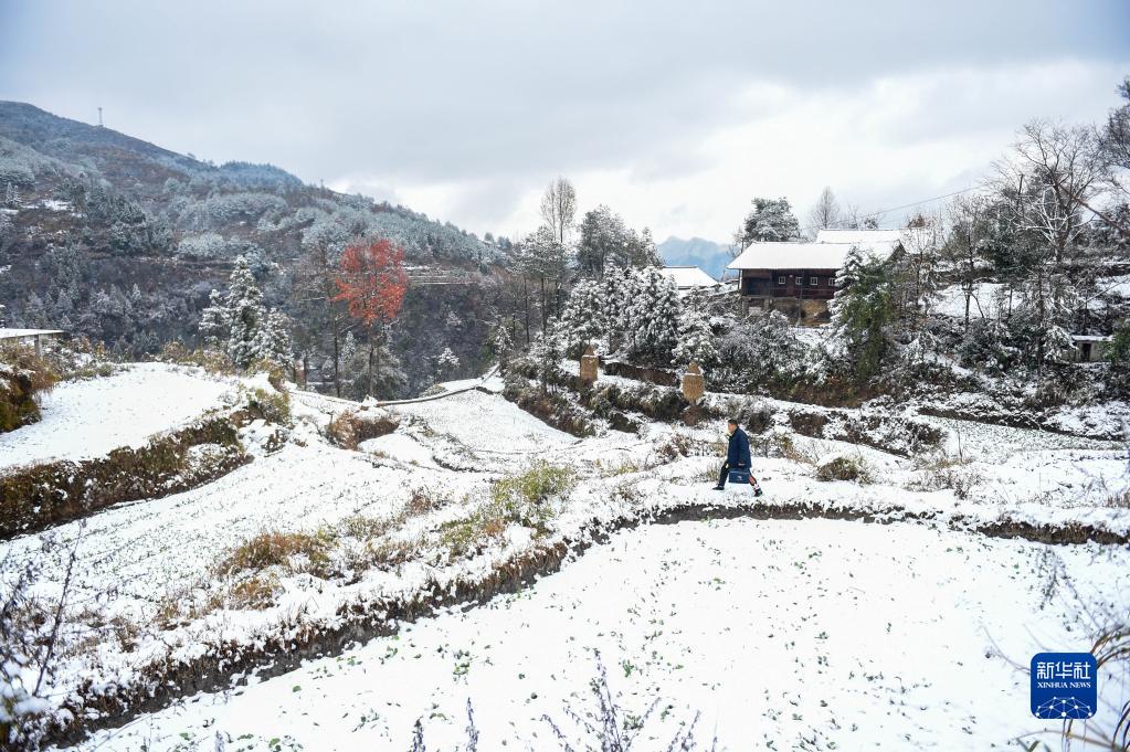 12月28日,刘开福雪后走在探望空巢老人的途中。