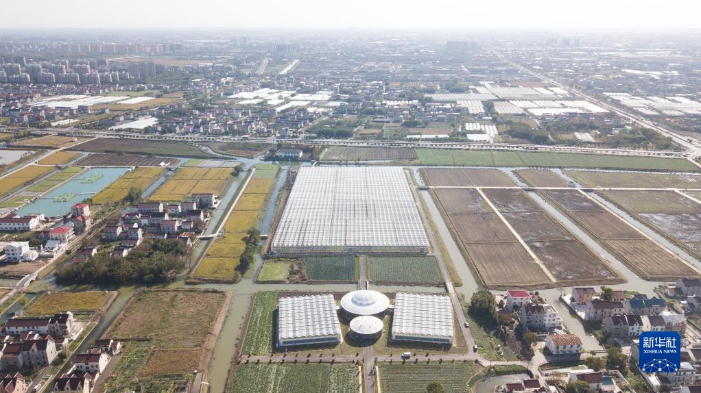 位于上海浦东新区宣桥镇腰路村的清美数字化蔬菜基地(12月7日摄,无人机照片)。