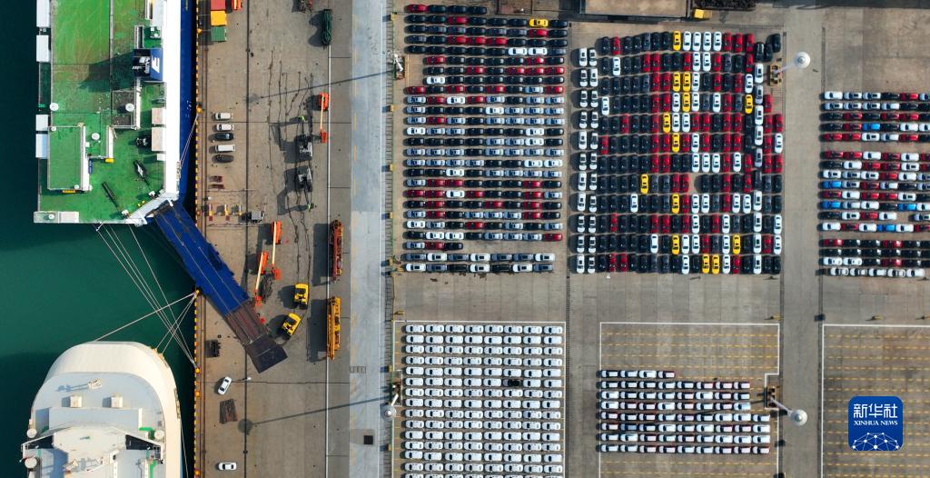岁末,江苏连云港港码头一片繁忙景象,一批又一批国产轿车陆续集结港口,等待装船出口海外。今年以来,连云港港通过加密滚装班轮航线,优化装卸作业流程,拉动了车辆出口量的持续增长。