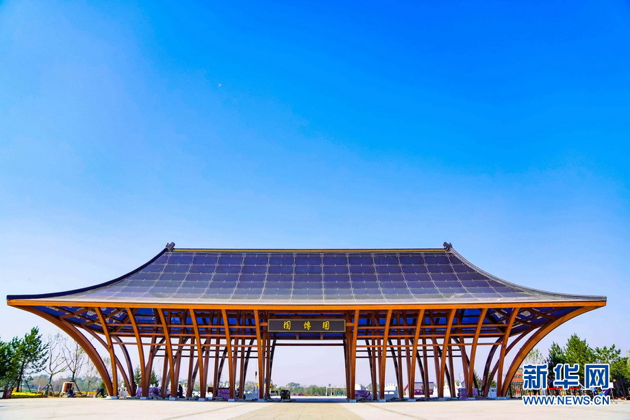 京杭大运河畔的沧州园博园的“沧州之门”。新华网发(崔上 摄)
