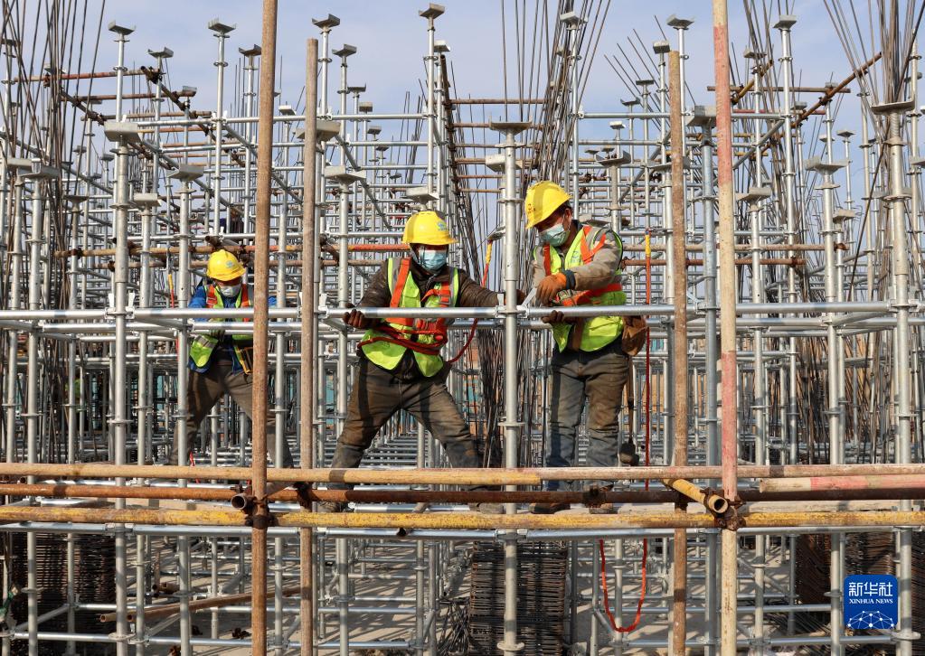 12月31日,中铁七局郑州公司的工作人员在进行支架搭设。