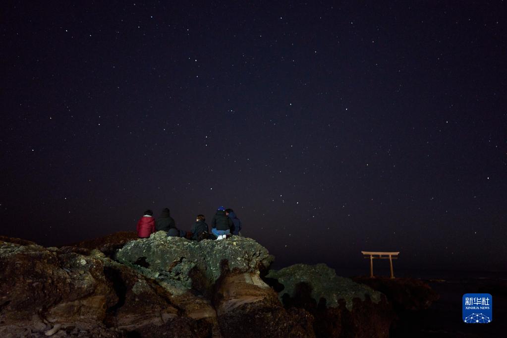 1月1日,人们在日本茨城县大洗町的海边等待日出。