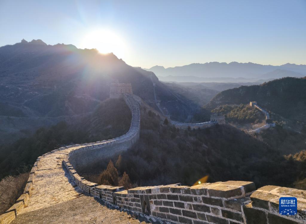1月1日在北京密云古北水镇司马台长城拍摄的日出。