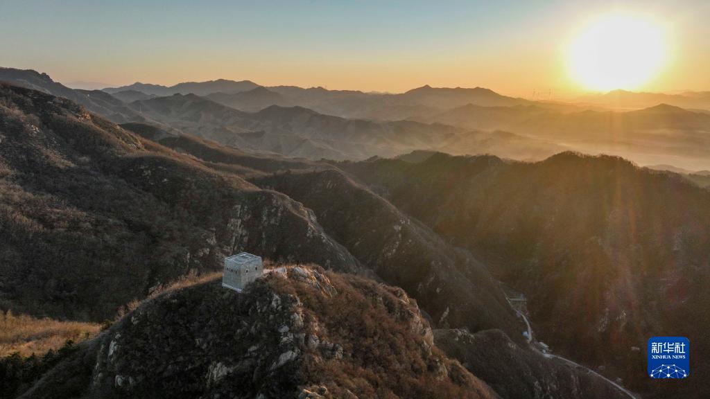 1月1日,晨光中的河北省遵化市境内的古长城(无人机照片)。