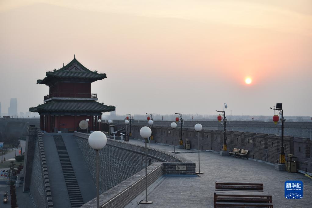 1月1日,在河北省石家庄市正定县南城门拍摄的新年初升的太阳。