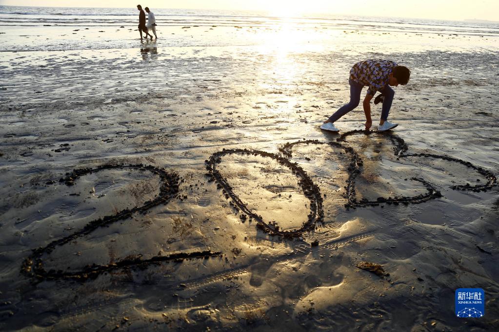 2022年12月31日,一名男子在巴基斯坦卡拉奇的海滩上迎接新年。