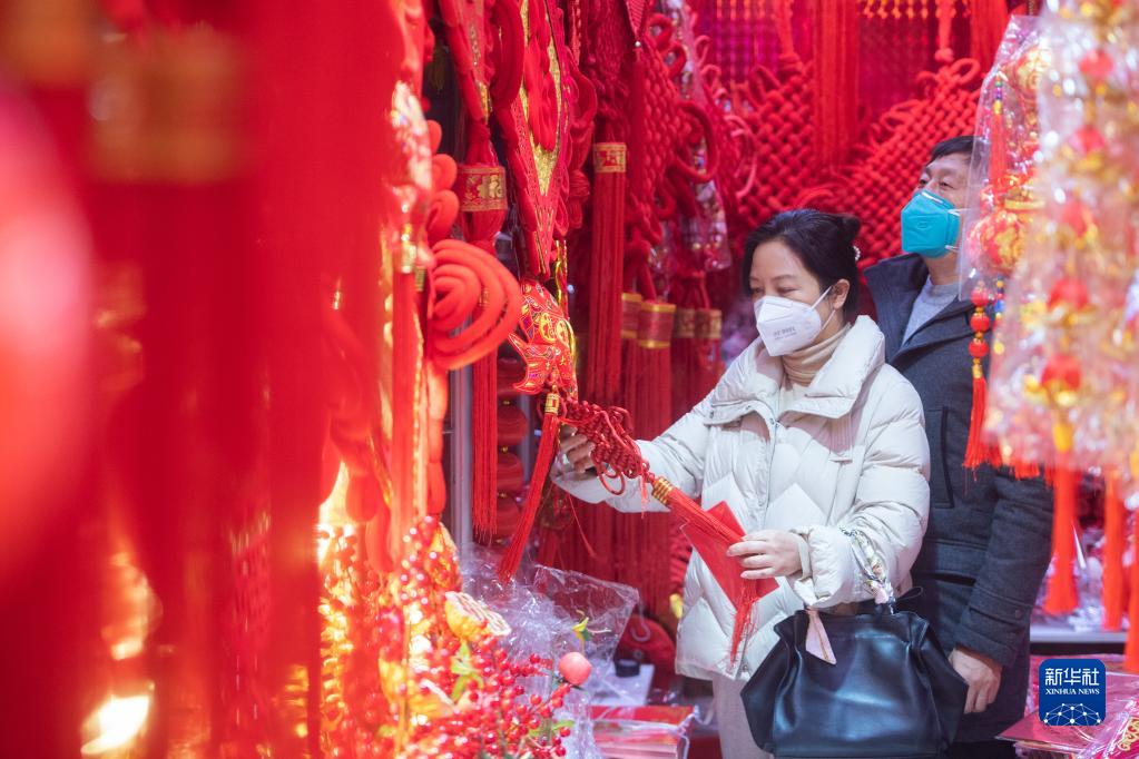 1月1日,市民在武汉市汉口北市场挑选年货。