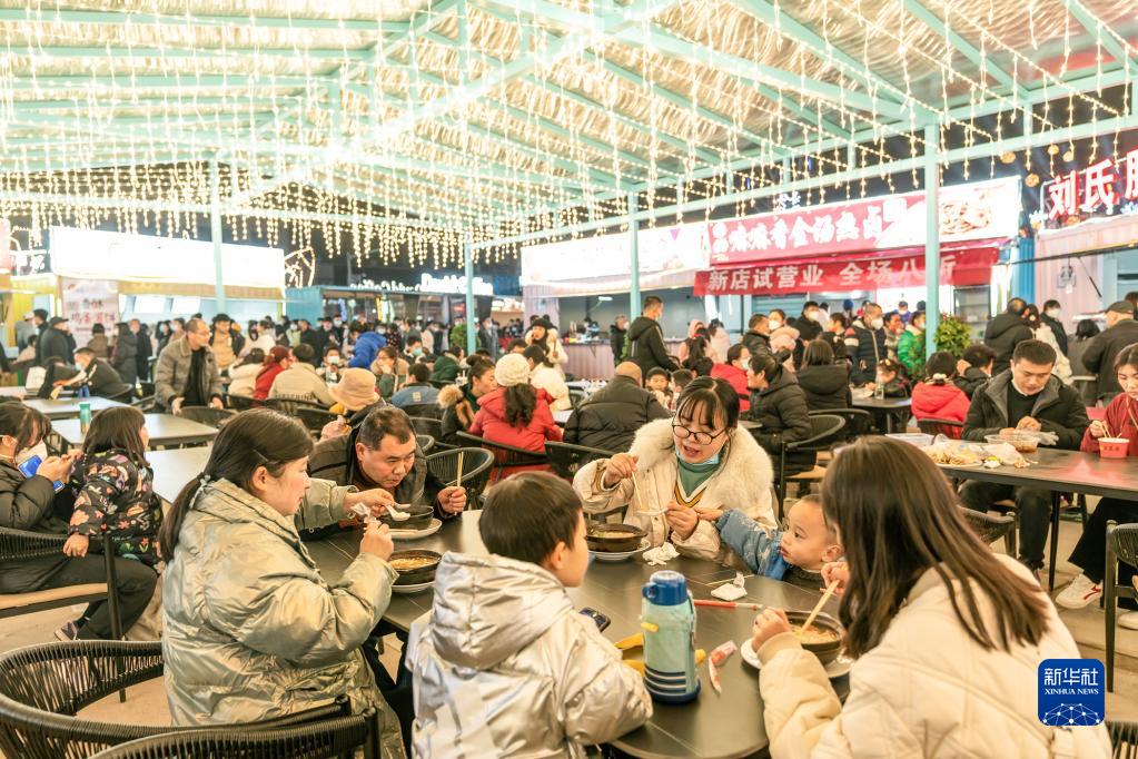 2022年12月31日晚,市民在四川省华蓥市“华蓥山夜市”品尝美食。