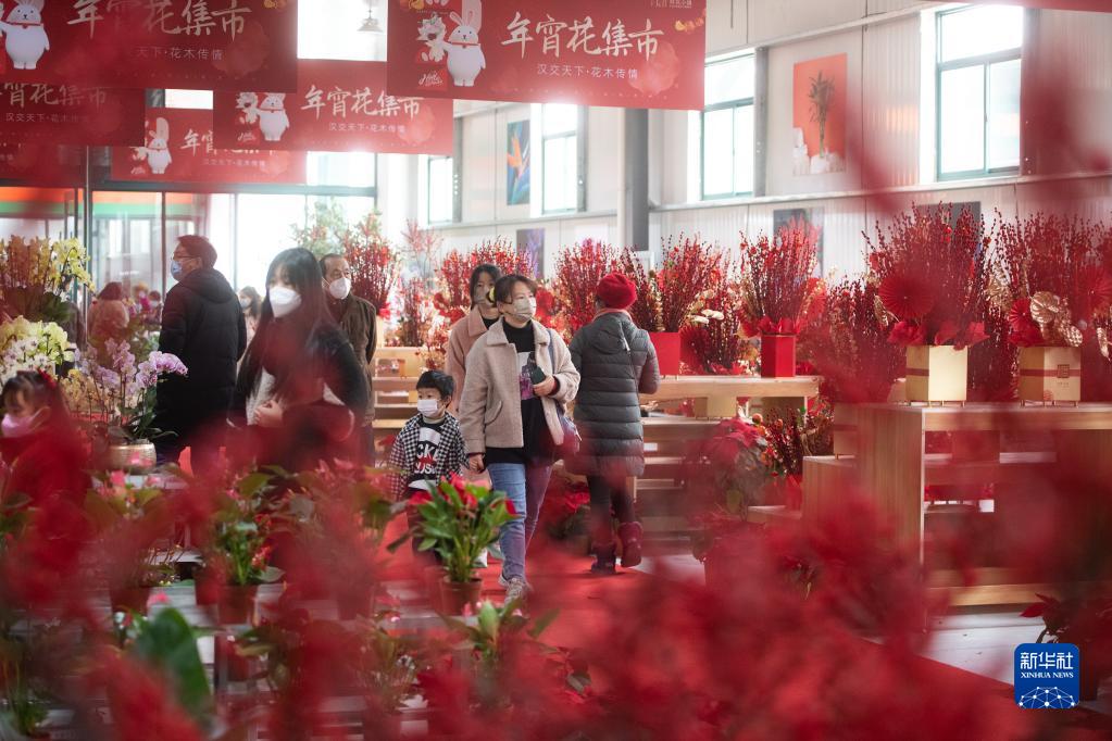 1月1日,消费者在武汉市汉口北鲜花市场购买鲜花。