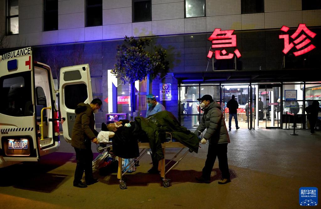 1月1日凌晨,西安交通大学第一附属医院急诊科的医务人员将患者用救护车转往医院其他院区住院治疗。
